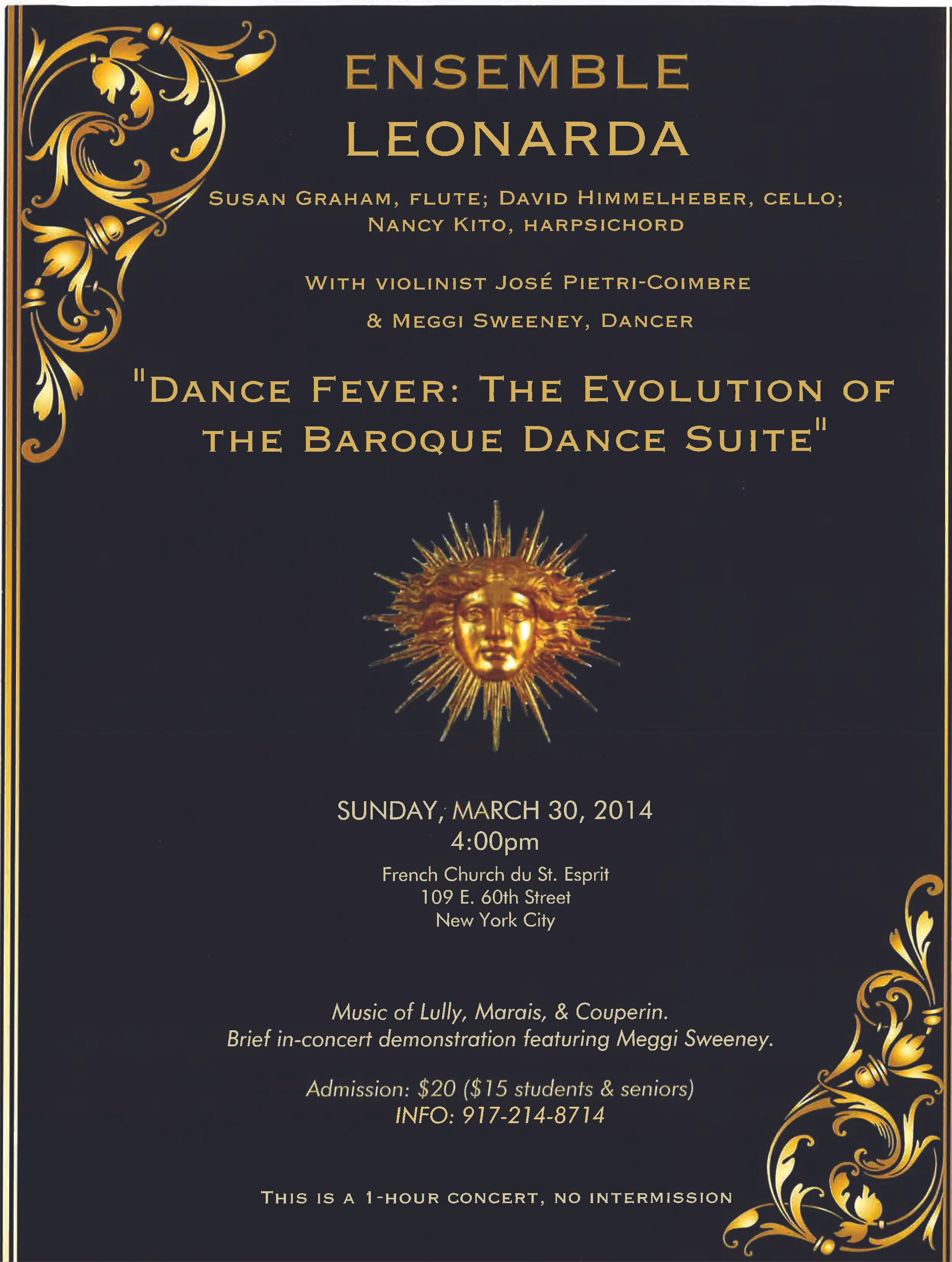 Susan Graham, flute; David Himmelheber, cello; Nancy Kito, harpsichord. With violinist Jose Pietri-Coimbre and dancer Meggi Sweeney.